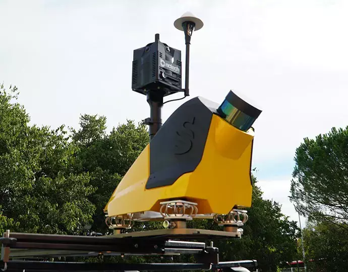 El Fly & Drive es un sistema de cartografía móvil versátil, montado ya sea en un vehículo terrestre o en un UAV, que fusiona el escaneo láser de alta resolución con un posicionamiento preciso para adquirir nubes de puntos georreferenciadas.