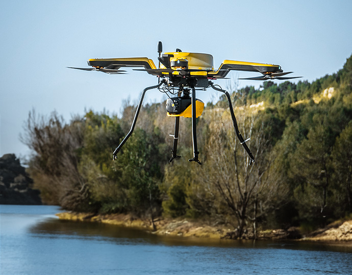 El sistema YellowScan Bathymetric está diseñado para realizar mediciones batimétricas en aguas poco profundas y se despliega rápidamente en un UAV. Este sistema LiDAR de forma de onda completa garantiza la continuidad entre los puntos submarinos y el terreno circundante.