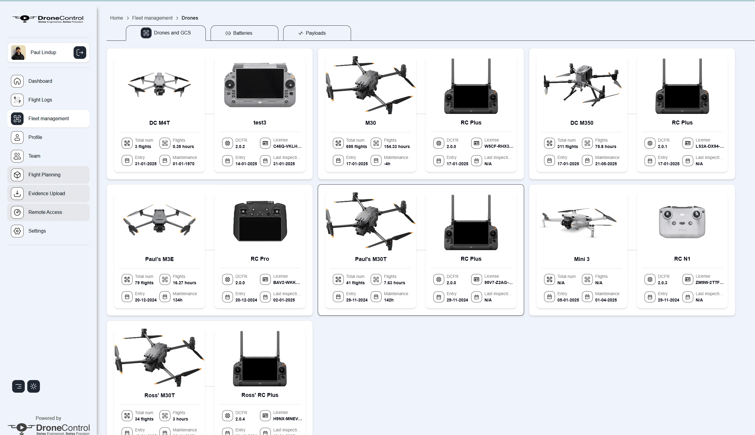 Critical information about the drone, battery, payload and remote control is seamlessly uploaded to the portal.