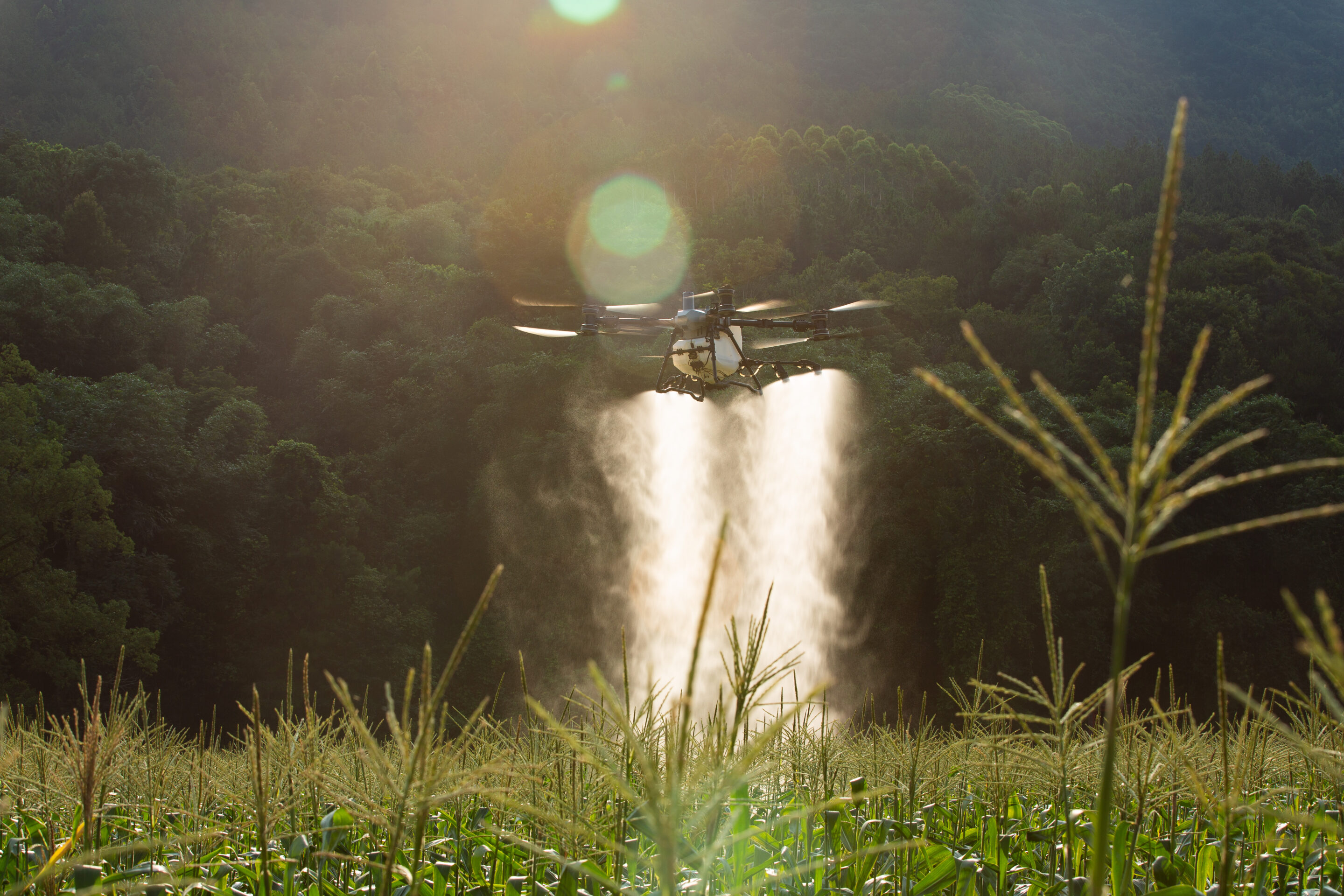 Fine droplets measuring just 50 μm penetrate the treetops for complete leaf coverage. A new liquid flow system helps dissipate heat from the dual centrifugal motor, ensuring its durability and service life.
