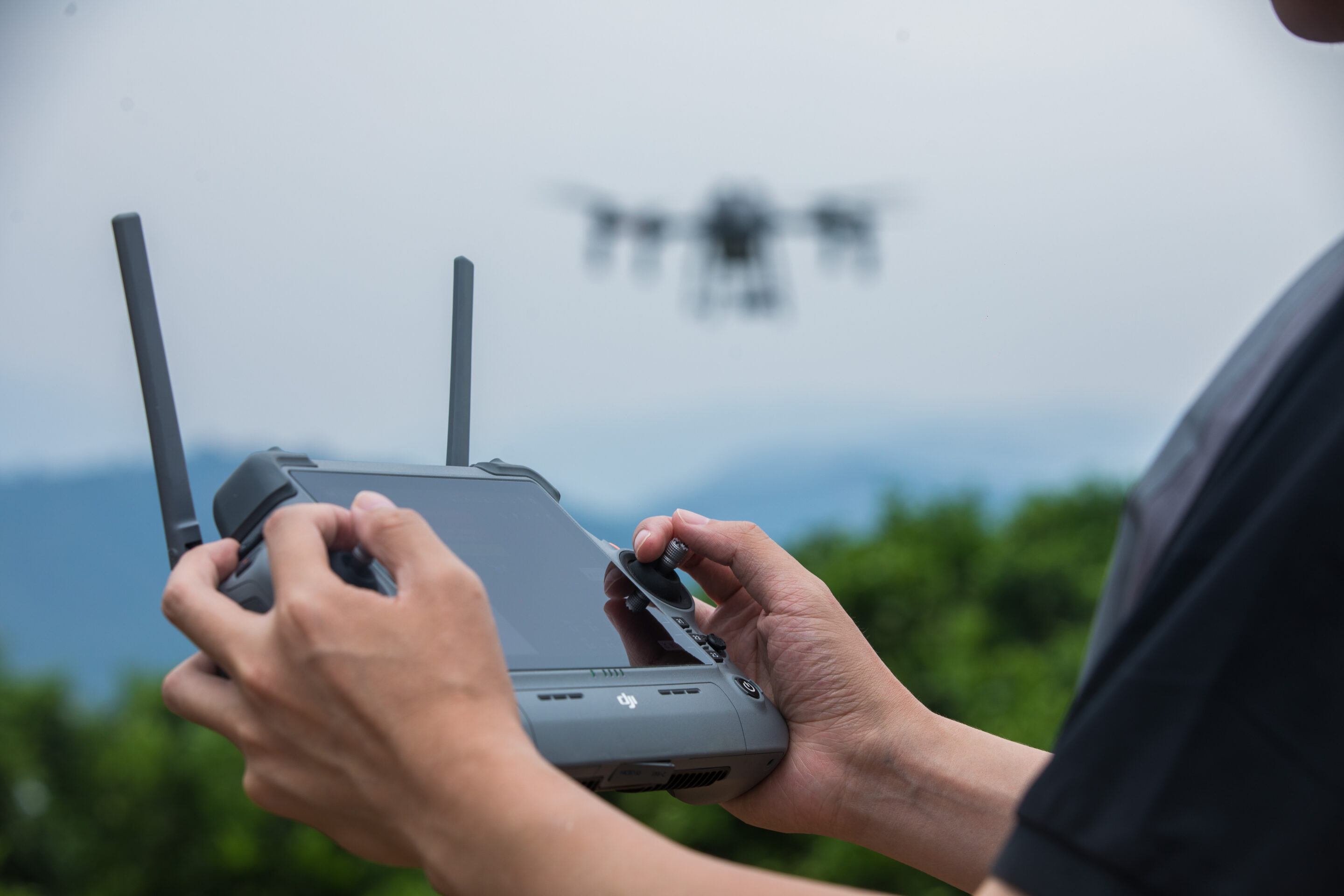 The DJI RC Plus features a high-brightness 7-inch display that is 16% brighter for clear visibility in sunlight. Internal and external battery life has been extended by 30 minutes. New backlit buttons improve nighttime operation, and customizable physical buttons offer flexible control.