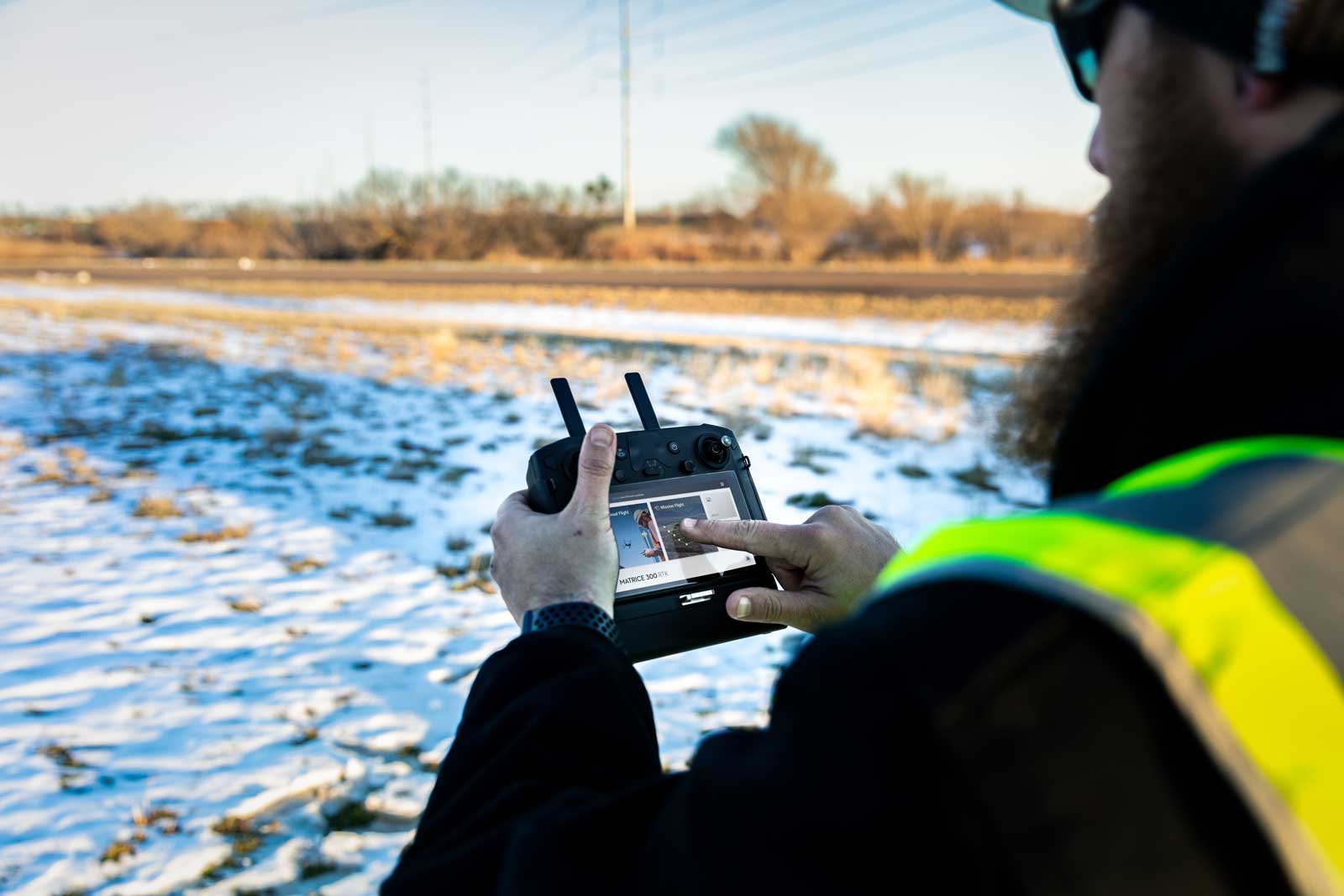 The M300 RTK comes with the new DJI Smart Controller Enterprise. This device features a 5.5-inch display that maintains clear visibility even in bright sunlight. The transmission is always in 1080p.