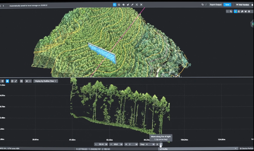 The DJI Modify Profile tool allows users to flexibly select cross-sectional areas of point cloud models for intuitive analysis of terrain variations, structural features, and elevation profiles.