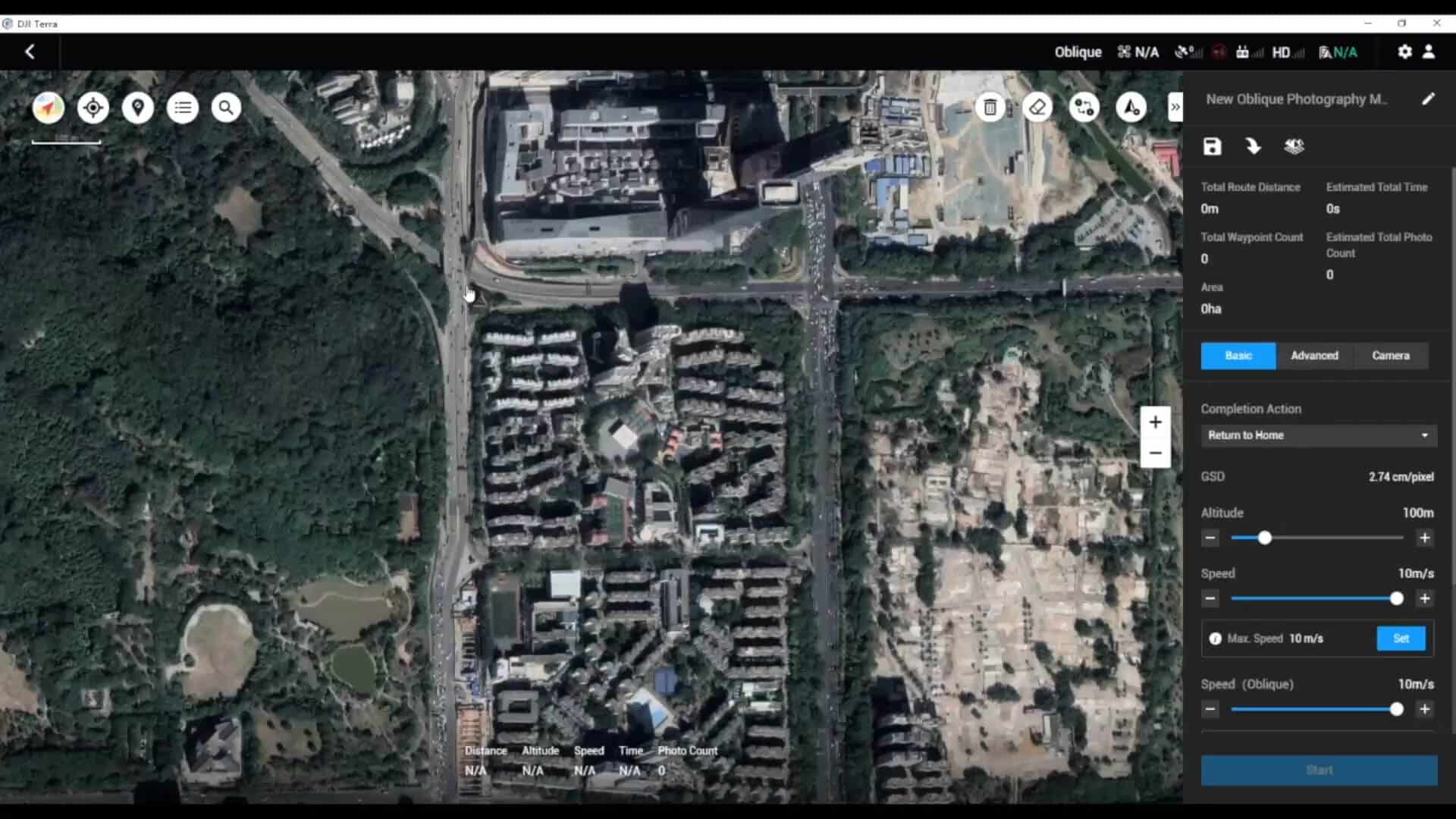 Each section of the flight path comes with a different oblique capture sequence, which means that the time spent completing each sequence and the speed at which each section is completed can vary, assuming a constant overlap rate. The aircraft will operate at maximum efficiency in intelligent oblique capture mode.