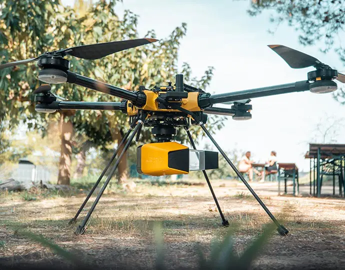 1 hardshell backpack 3.2 kg 1 Explorer – 1,8 kg 4 batteries + 1 charger (RRC 2040 – 11,1v) 1 GNSS Antenna AV18 (para sistema YellowScan) 2 USB keys (Samsung 256go x2) CloudStation Essential (1 licence) SBG Qinertia UAV (1 licence) Technical support (1-year unlimite) Warranty (1 year) 1 Remote healthcheck In-person or online training Boresight calibration certificate |