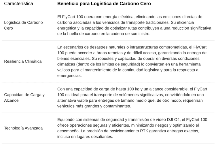 Características clave del FlyCart 100 para la Logística de Carbono Cero y Resiliencia Climática: